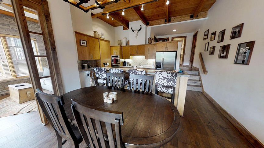 Our family room offers a comfortable respite from a full day on the mountain skiing, hiking or on the river fly-fishing. Kick your feet up and throw a blanket over you on our cozy sectional couch that comfortably seats 8. After the stunning sunset right out of the western facing triple panned sliders, turn on the gas fireplace with the flip of a switch. Enjoy the 65 inch TV to watch your favorite Apple TV movie/show or watch those videos from the days adventure or just play your favorite music though the Sonos sound system with your favorite cocktail or glass of wine. Between the sectional and the Pottery Barn genuine leather recliner arm chair the room comfortably accommodates 9 adults making it a perfect place to tell stories from the day or play one of the many games we have available to our guests.